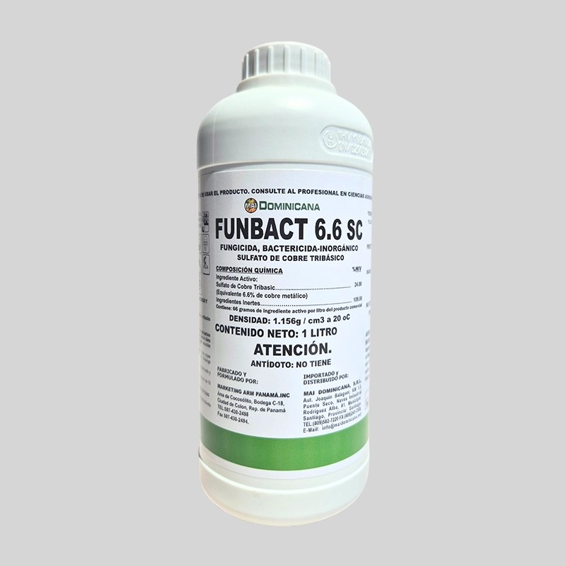 FUNBACT 24 SC, durante su fabricación pasa por un proceso de acomplejamiento con sustancias organicas (aminoácidos libres) que nos permite que las moléculas del Sulfato de Cobre se puedan mover de una forma traslaminar sobre el follaje de los cultivos.